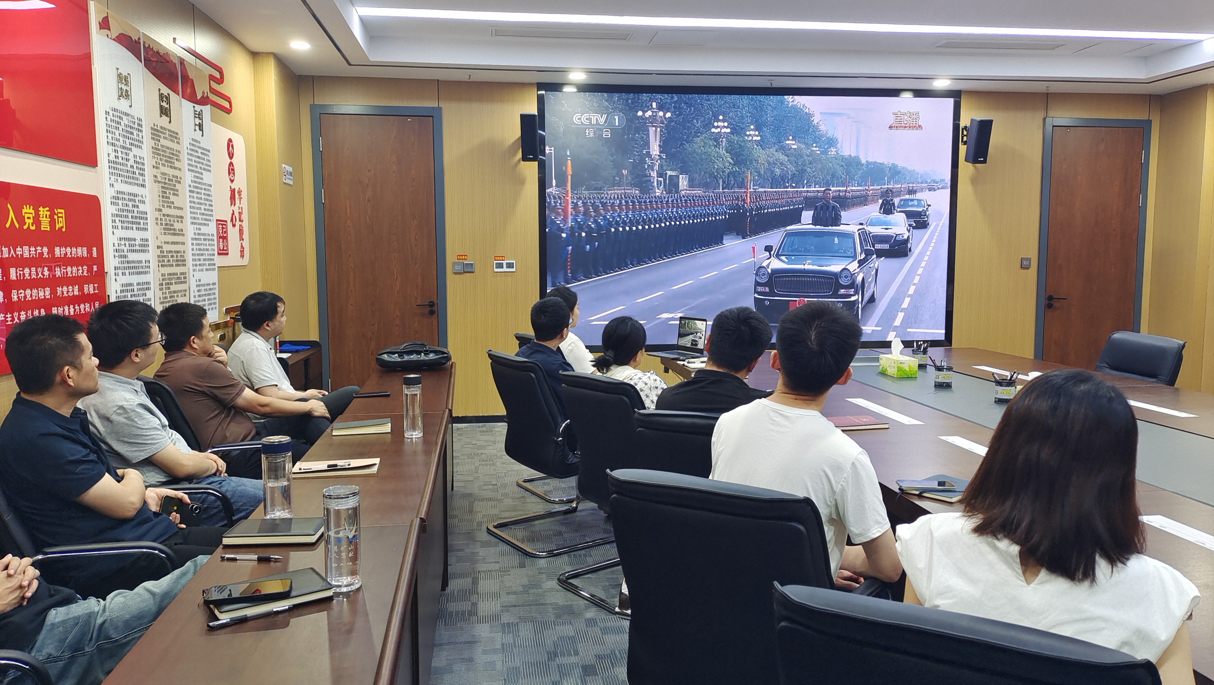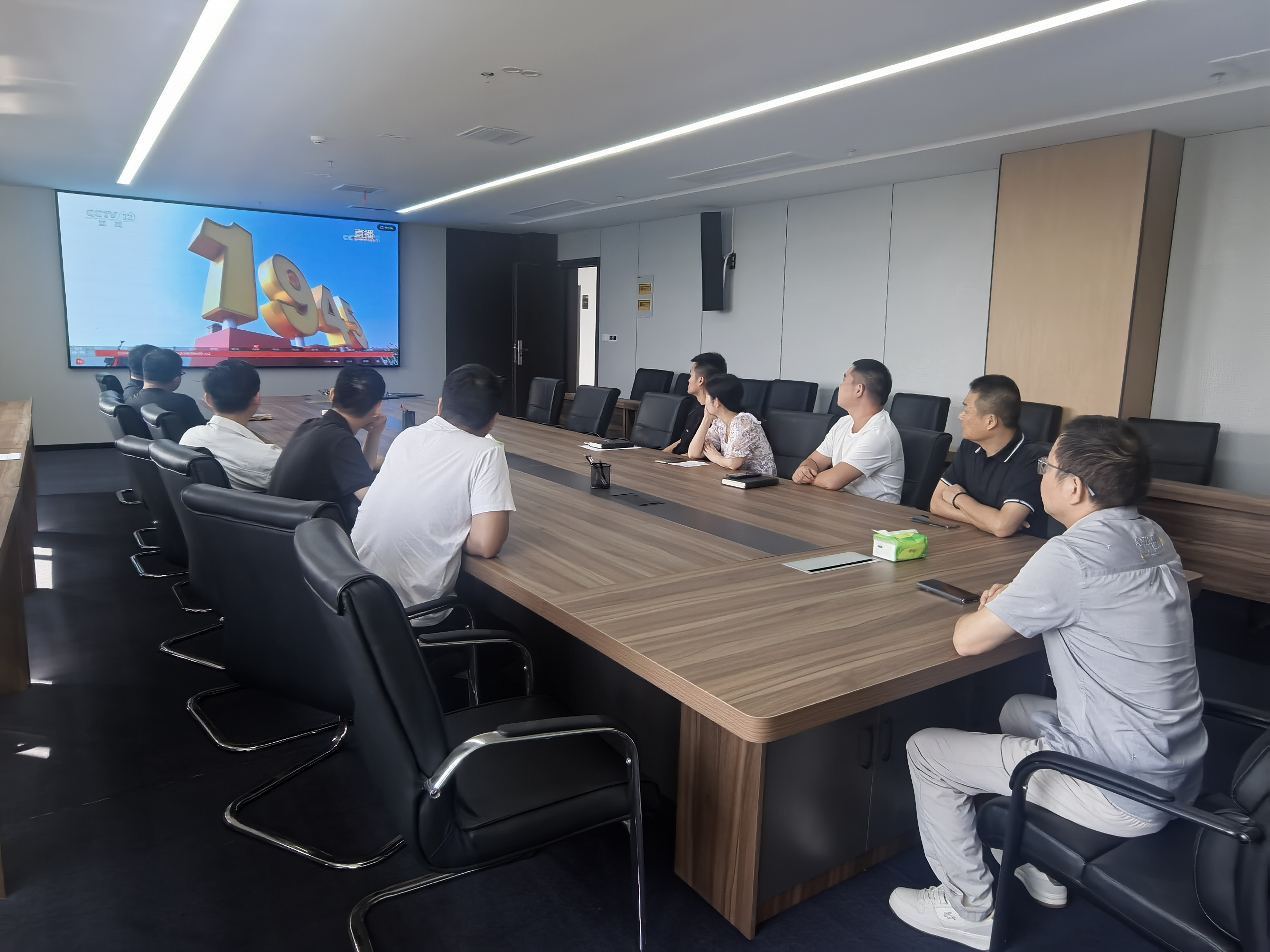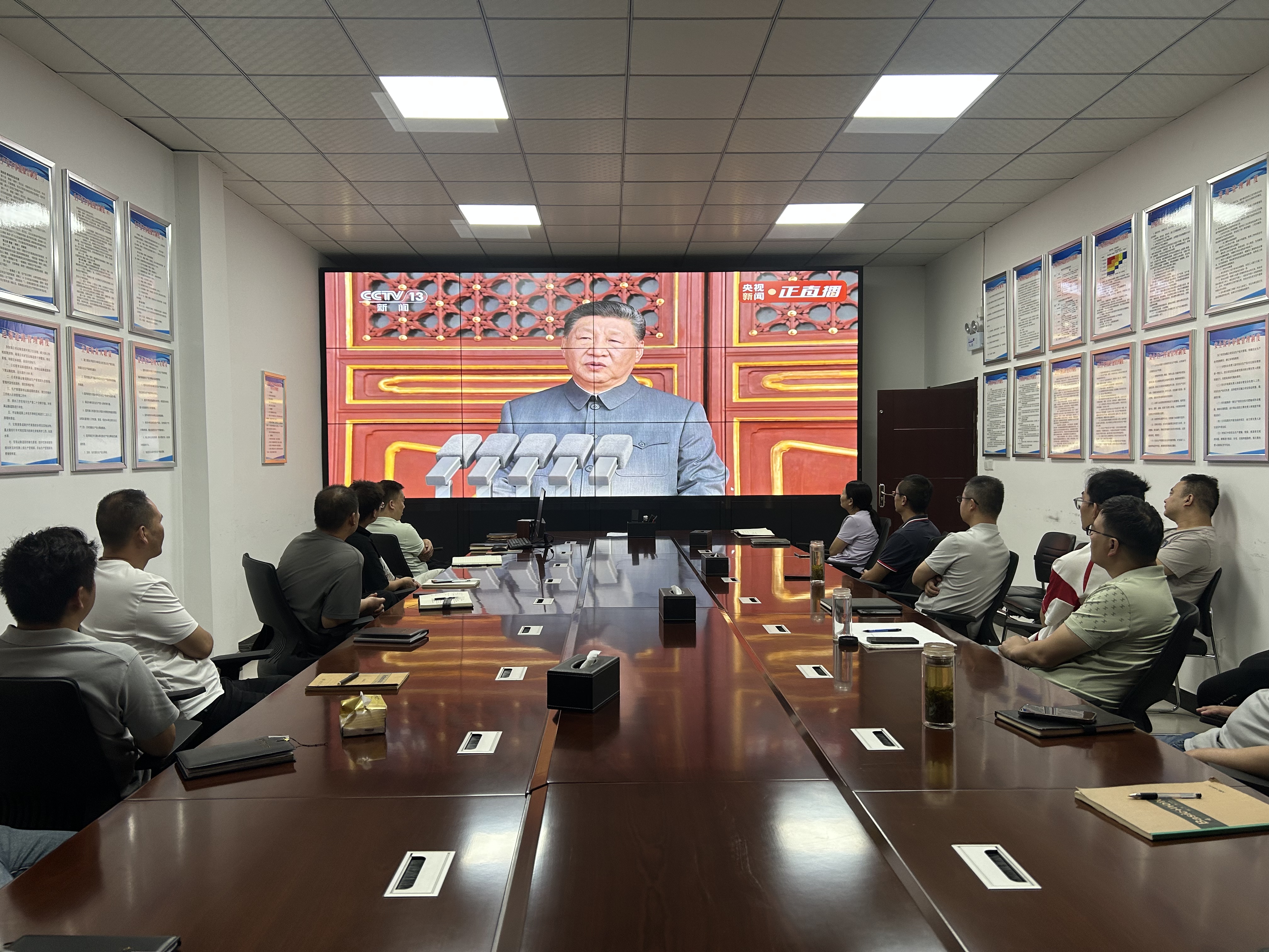 當(dāng)天,各子公司結(jié)合礦山生產(chǎn)實(shí)際設(shè)置觀看點(diǎn),確保一線礦工、技術(shù)人員及后勤保障人員都能準(zhǔn)時(shí)觀看。上午9時(shí)整,紀(jì)念大會(huì)正式開始。直播畫面中,天安門廣場(chǎng)莊嚴(yán)壯麗,長(zhǎng)安街盛裝以待,大家全神貫注觀看閱兵盛況,認(rèn)真聆聽習(xí)近平總書記重要講話,共同感受大國崛起的磅礴力量。當(dāng)看到受閱方隊(duì)邁著鏗鏘步伐通過天安門、先進(jìn)裝備列陣亮相時(shí),大家更是心潮澎湃,為祖國的強(qiáng)大和人民軍隊(duì)的威武雄壯而感到無比自豪。